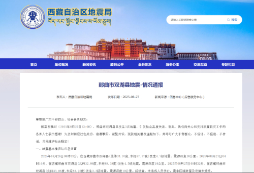 西藏那曲市双湖县共发生3次地震,引发社会高度关注。经核查,地震未造成人员伤亡,震中区域房屋及设施未受损。