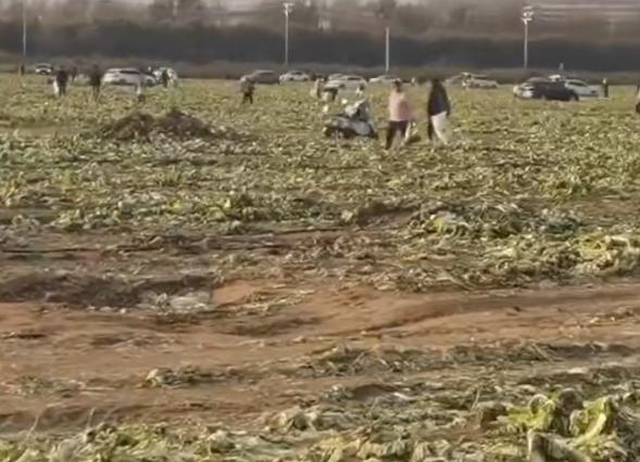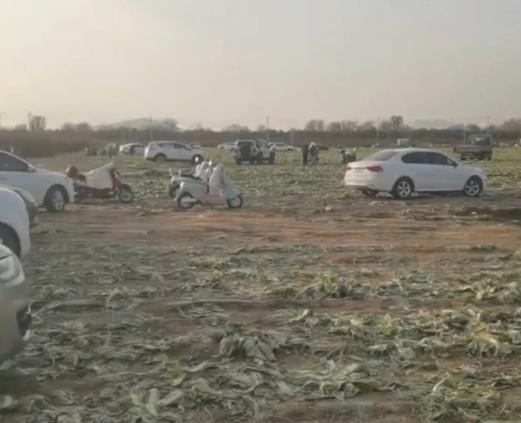 在网传的一则视频中,博主的镜头面向一片齐整的白菜地,并配文称“几百亩大白菜现在都不要了”“内蒙古欢迎您来捡白菜”。这条未经核实的视频被发布后,又经个别媒体和部分网友传播,让事发菜地的种植户李先生最终在11月6日上午见到了失控的一幕。